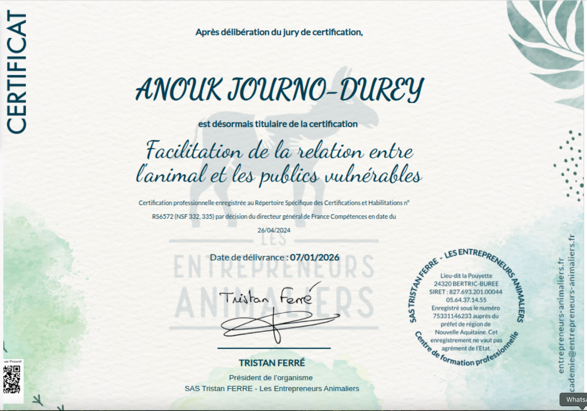 Chaque atelier est conçu avec attention, dans le respect du bien-être animal et humain.